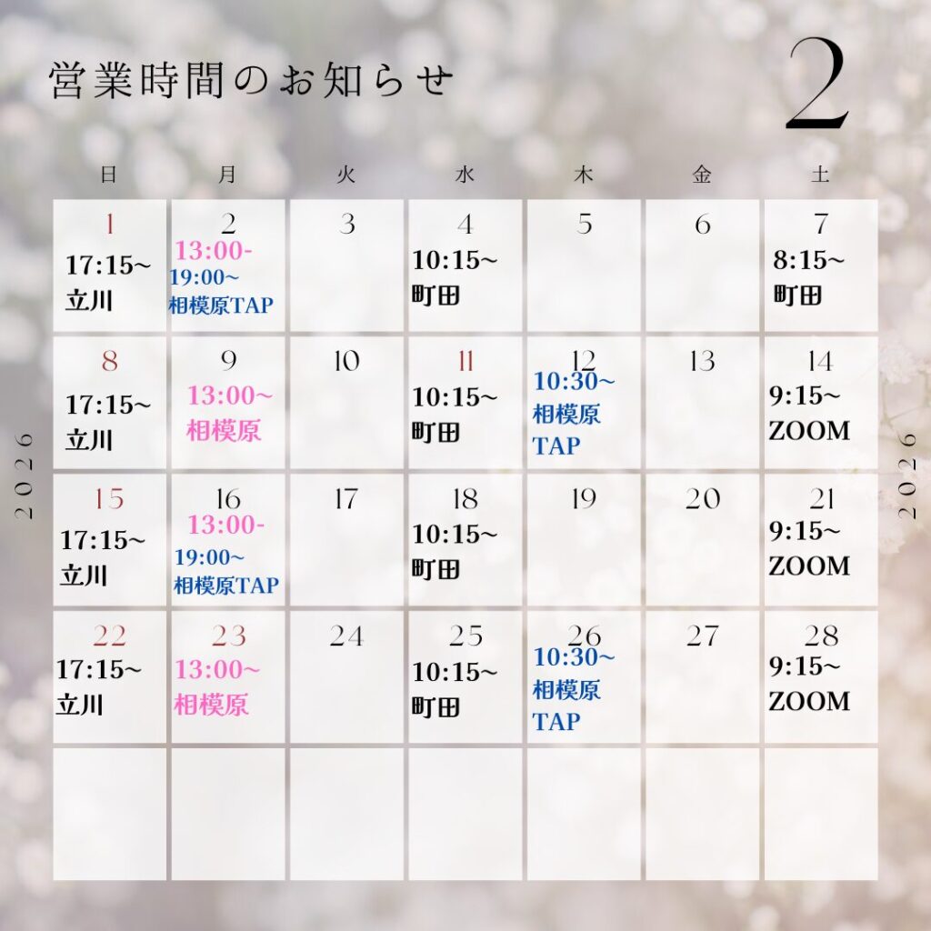 ※次は3月7日(土)9時15分〜10時45分 マイレッスン町田*1号館*Dスタジオです。