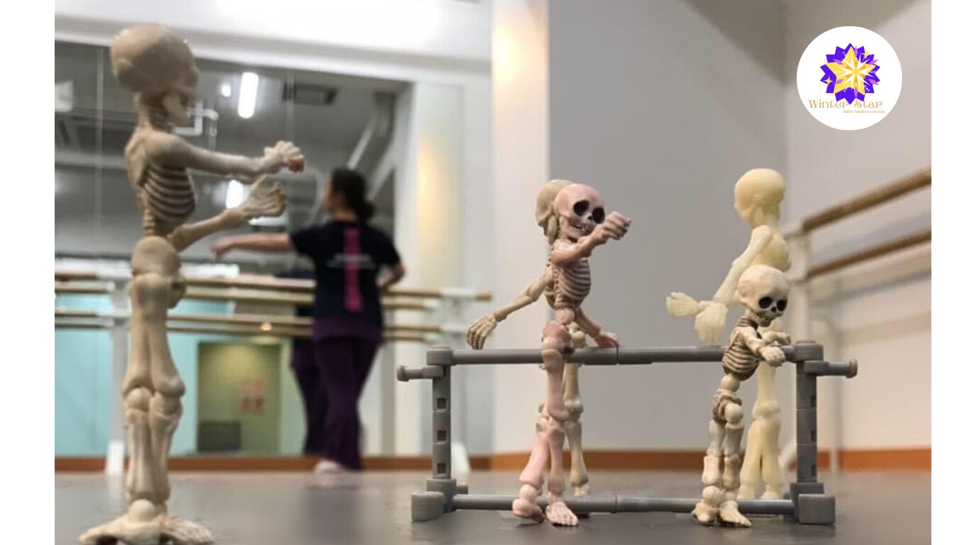 「どの筋肉をどう使うのが正しいか」を、骨格標本の骨ぇさんと一緒に確認。自分の立ち姿を根本からリセットしてから、繰り返し練習します。